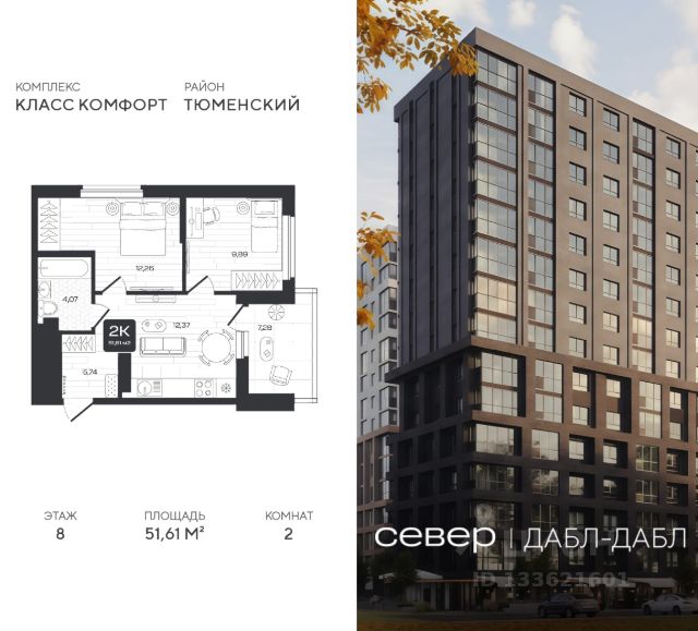 Продаётся квартира площадью 60.50 м2 в жилом комплексе "Айрис". Квартира находится на 2 этаже дома, который будет введен в эксплуатацию в 3 квартале 2027 года. Жилая площадь квартиры 16.50 м2, площадь просторной кухни — 16.70 м2. Среди особенностей планировки — изолированные комнаты с окнами на одну сторону, 1 совмещённый санузел. Жилой комплекс "Айрис" — это: фиджитал-квартал в Тюмени дома высотой от 7 до 25 этажей квартиры с системой "Умный дом" цифровые технологии как элемент благоустройства Срок сдачи — III кв. 2027 Окружение В нескольких минутах ходьбы от дома — парк "Комарово" с волейбольной площадкой, открытым кинотеатром, зонами для барбекю и катком. Неподалеку от Airis находится центр иппотерапии, где можно покататься на лошадях и взять уроки верховой езды. На территории Airis появится собственный парк с прогулочными аллеями. Инфраструктура В 5-10 минутах от квартала открыты 2 детских сада и гимназия. На шопинг можно отправиться в торговые комплексы "Колумб" и "Кристалл" — они находятся недалеко от дома. Благоустройство Уютный двор — приватное пространство для жителей. В беседках можно будет почитать книгу в тишине, а в тени деревьев устроиться на пикник. На крыше многоуровневого паркинга будет лаунж-зона с кинотеатром, баскетбольная площадка и воркаут-пространство, где можно позаниматься с виртуальным тренером — достаточно отсканировать код. Лобби Интерьеры лобби выполнены в пастельных тонах с элементами фиджитал-решений. Для отдыха и ожидания гостей создана лаунж-зона. Также есть гостевые санузлы. Колясочные Возвращайтесь налегке после прогулки с малышом — оставить коляску можно в специальном помещении на первом этаже. Кладовые Для сезонных и габаритных вещей предусмотрены отдельные кладовые на цокольном этаже. В каждом помещении уже проведено электричество и выполнена стяжка пола. Паркинг На территории — два многоуровневых наземных паркинга. Один из них примыкает к домам — из него можно напрямую пройти в парадные. Планировки Планировки квартала — от компактной студии до сити-хауса с собственным палисадником — соответствуют любым жизненным сценариям. Можно выбрать квартиры с террасами и готовыми дизайнерскими интерьерами. Продам квартиру в новостройке с отделкой в Тюменской области.