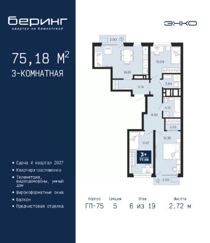 Продаётся квартира площадью 31.81 м2 в жилом комплексе "Смородина". Квартира находится на 2 этаже, жилая площадь квартиры 9.35 м2, площадь просторной кухни — 12.18 м2. Среди особенностей планировки — изолированные комнаты с окнами на одну сторону, 1 совмещённый санузел. Срок сдачи — IV кв. 2026 Жилой комплекс "Смородина" — это: - уютный малоэтажный комплекс в районе ММС - дома высотой 4 этажа - квартиры от студий до семейных вариантов с отапливаемыми лоджиями - экологичные материалы в благоустройстве территории Окружение В 5 минутах ходьбы от проекта — озеро Липовое с песчаным пляжем и лесопарковая зона. Инфраструктура В шаговой доступности есть все для комфортной жизни: школы, детские сады, магазины и аптеки. Рядом с проектом — остановка общественного транспорта. Благоустройство Прямо во дворе — собственные грядки для жителей, где можно выращивать зелень и цветы. Для детей оборудованы детские площадки из натуральных материалов. Лобби Вдохновленные современными тенденциями наши парадные разработаны с акцентом на эстетическую привлекательность и практичность. Использование натуральных материалов и ярких цветовых акцентов создает атмосферу уюта и стиля. Планировки Среди многообразия продуманных планировок есть и уютные студии, и просторные семейные варианты. Во всех квартирах предусмотрены отапливаемые лоджии, где можно устроить зону отдыха или рабочий кабинет. Продается квартира на старте продаж в ЖК в Тюмени.