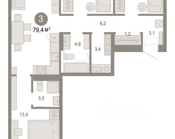 Квартира с кухней-гостиной и двумя спальнями в Октябрьском на Туре. Особенности планировки: вид во двор, мастер-спальня, предчистовая отделка, разнесённые спальни. квартиры в нашей базе: ОКТ09-Ж7.5.1. Район Проект расположен на берегу реки, в одном из самых живописных и экологичных районов Тюмени. За последние годы облик района изменился. По соседству с индивидуальной застройкой выросли многоквартирные дома. При проектировании "Октябрьского на Туре" нашей приоритетной задачей стало сохранение природного ландшафта: мы постарались деликатно вписать в него современную архитектуру. Квартал удачно расположен с точки зрения дорожной инфраструктуры. На автомобиле путь до центра города составит 15 минут. Добраться до набережной и главных тюменских достопримечательностей можно и на общественном транспорте. В пешей доступности находится автобусная остановка. Проект По мастер-плану здесь будет восемь домов. Ядро застройки составляют замкнутые кварталы переменной этажности. Их высотность понижается по мере приближения к реке. На углах участка мы разместили башни-доминанты. Одной из достопримечательностей квартала станет парк на Туре — здесь появится зеленая зона протяженностью около 6 километров для пеших и велопрогулок. Смысловая ось квартала — широкая главная улица с высаженными вдоль неё высокими деревьями. Они создают тень и работают как шумо- и пылезащитные экраны. Это место сосредоточения основных пешеходных и транспортных потоков, на сторону которых мы ориентировали большинство коммерческих помещений. Отсюда жители могут свернуть на тихие соседские улицы и попасть на внутриквартальную площадь — ещё одну точку притяжения. Продается квартира в новостройке в микрорайоне ДОК в городе Тюмень.