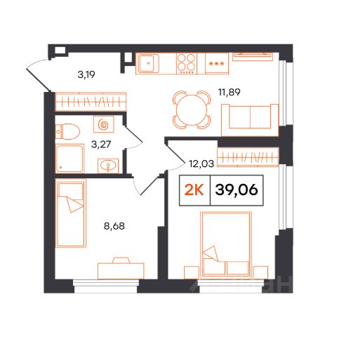 ОБЪЕКТ: студия, площадь 25,8 кв.м., 3 этаж 24-этажного дома