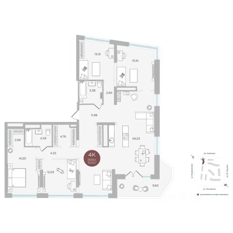 Квартира выполнена по высокотехнологичным стандартам, с отличной шумоизоляцией, что гарантирует вам спокойствие и комфорт.