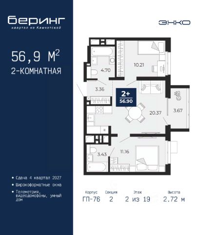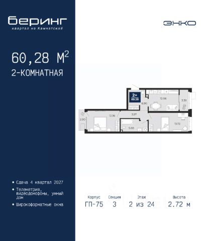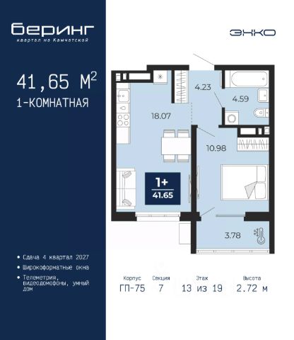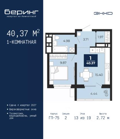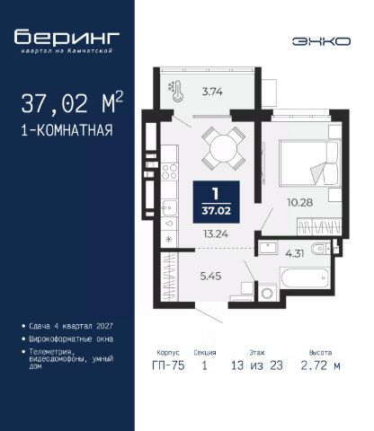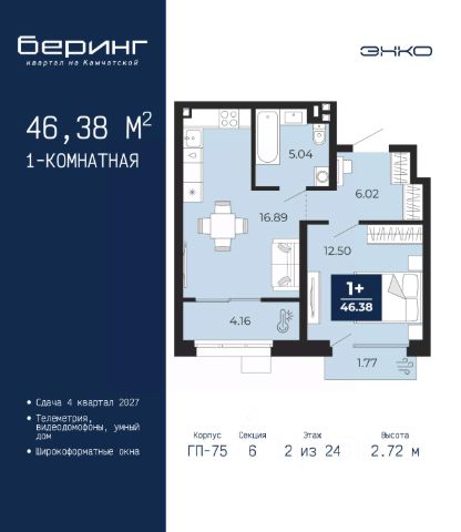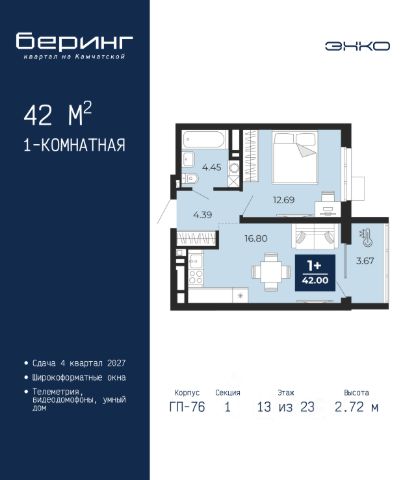 Успейте оформить бронирование на этих условиях, период акции ограничен! Стоимость квартиры указана со скидкой, ваша экономия составит 328,383 руб. Информация по телефону, наши менеджеры вам все расскажут. 1-комн. квартира в ЖК "Беринг" на 7 этаже. Общая площадь: 47.55 кв.м. Высота потолков 2.75 м. Дом монолитный, многоподъездный, переменной этажности, от 9 до 21 этажей. Квартира находится в 74.5-й секции высотой 21 этаж в корпусе ГП-74. На этаже 7 квартир. В подъезде 1 пассажирский и 1 грузовой лифт. Окончание строительства - 1 квартал 2026 года. Оформление сделки по договору долевого участия. Подобно знаменитому исследователю, мы чувствуем себя первооткрывателями этой локации. Хотим показать новую суть места, сформировать для вас жизненный опыт, которого ещё не было. Беринг — район зелёного цвета. Беринг — район, который откроется вам с другой стороны. Впечатлит новым уровнем комфорта и качеством жизни. Беринг — открытие на карте города. Первый квартал расположен в районе Тура, в границах улиц: Камчатская Западносибирская Энтузиастов. Вокруг уже есть всё для того, чтобы ежедневная рутина была лишь частью жизни и не доставляла дискомфорта. Школы и детские сады, магазины и аптеки, поликлиника, места для семейного отдыха, пеших и велопрогулок, и даже рыбалки. Масштабное озеленение дворов — визитная карточка ЭНКО и ваш оазис спокойствия, чтобы отвлечься от повседневности. Раскидистые деревья, кустарники, травы и цветы — осталось остановиться, вдохнуть и расслабиться, глядя на эту природную красоту. Стилистика подъездов продолжает концепцию Беринга, вдохновлённого Камчаткой: сдержанный, но при этом впечатляющий дизайн соседствует с удобством и функциональностью. #26Dett