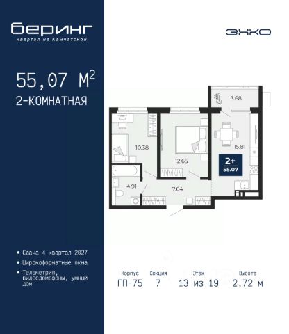 Спешите оформить бронирование на этих условиях, предложение ограничено! Стоимость квартиры указана со скидкой, ваша экономия составит 328,383 руб. Звоните, мы вам все подробно расскажем. Продается 1-комн. квартира от застройщика в ЖК "Беринг" на 7 этаже. Общая площадь: 47.55 кв.м. Высота потолков 2.75 м. Дом монолитный, многоподъездный, переменной этажности, от 9 до 21 этажей. Квартира находится в 74.5-й секции высотой 21 этаж в корпусе ГП-74. На этаже 7 квартир. В подъезде 1 пассажирский и 1 грузовой лифт. Окончание строительства - 1 квартал 2026 года. Оформление сделки по договору долевого участия. Подобно знаменитому исследователю, мы чувствуем себя первооткрывателями этой локации. Хотим показать новую суть места, сформировать для вас жизненный опыт, которого ещё не было. Беринг — район зелёного цвета. Беринг — район, который откроется вам с другой стороны. Впечатлит новым уровнем комфорта и качеством жизни. Беринг — открытие на карте города. Первый квартал расположен в районе Тура, в границах улиц: Камчатская Западносибирская Энтузиастов. Вокруг уже есть всё для того, чтобы ежедневная рутина была лишь частью жизни и не доставляла дискомфорта. Школы и детские сады, магазины и аптеки, поликлиника, места для семейного отдыха, пеших и велопрогулок, и даже рыбалки. Масштабное озеленение дворов — визитная карточка ЭНКО и ваш оазис спокойствия, чтобы отвлечься от повседневности. Раскидистые деревья, кустарники, травы и цветы — осталось остановиться, вдохнуть и расслабиться, глядя на эту природную красоту. Стилистика подъездов продолжает концепцию Беринга, вдохновлённого Камчаткой: сдержанный, но при этом впечатляющий дизайн соседствует с удобством и функциональностью. #z6dEtT