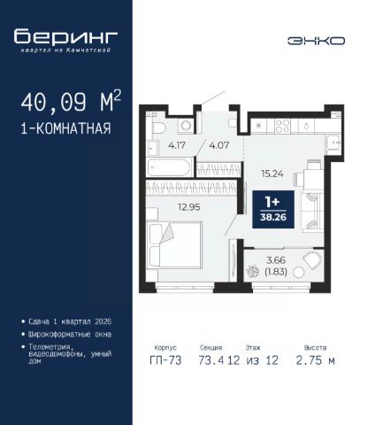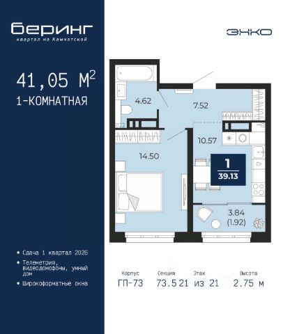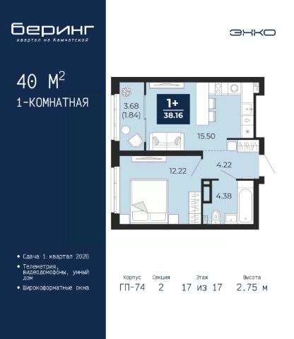 Успейте оформить бронирование по этой цене, период предложения ограничен! Стоимость квартиры указана со скидкой, ваша экономия составит 328,383 руб. По всем вопросам звоните в офис продаж, мы вам все подробно расскажем. Продается однокомнатная квартира в ЖК "Беринг" на 7 этаже. Общая площадь: 47.55 кв.м. Высота потолков 2.75 м. Дом монолитный, многоподъездный, переменной этажности, от 9 до 21 этажей. Квартира находится в 74.5-й секции высотой 21 этаж в корпусе ГП-74. На этаже 7 квартир. В подъезде 1 пассажирский и 1 грузовой лифт. Окончание строительства - 1 квартал 2026 года. Оформление сделки по договору долевого участия. Подобно знаменитому исследователю, мы чувствуем себя первооткрывателями этой локации. Хотим показать новую суть места, сформировать для вас жизненный опыт, которого ещё не было. Беринг — район зелёного цвета. Беринг — район, который откроется вам с другой стороны. Впечатлит новым уровнем комфорта и качеством жизни. Беринг — открытие на карте города. Первый квартал расположен в районе Тура, в границах улиц: Камчатская Западносибирская Энтузиастов. Вокруг уже есть всё для того, чтобы ежедневная рутина была лишь частью жизни и не доставляла дискомфорта. Школы и детские сады, магазины и аптеки, поликлиника, места для семейного отдыха, пеших и велопрогулок, и даже рыбалки. Масштабное озеленение дворов — визитная карточка ЭНКО и ваш оазис спокойствия, чтобы отвлечься от повседневности. Раскидистые деревья, кустарники, травы и цветы — осталось остановиться, вдохнуть и расслабиться, глядя на эту природную красоту. Стилистика подъездов продолжает концепцию Беринга, вдохновлённого Камчаткой: сдержанный, но при этом впечатляющий дизайн соседствует с удобством и функциональностью. #zmDEtt