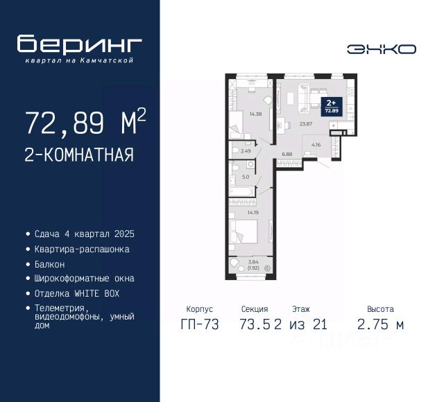 Квартира в жилом комплексе "Беринг" — это современное жилье в одном из самых перспективных районов Тюмени, всего в пяти минутах от центра города. Район отличается развитой инфраструктурой: в шаговой доступности школы, детские сады, поликлиника, аптеки, магазины, а также зоны отдыха с пешеходными и велодорожками. ЖК "Беринг" сочетает удобное расположение с высоким качеством строительства и комфортными планировками. Квартира площадью 68 м² представляет собой просторную евротрешку с улучшенной предчистовой отделкой White Box, что позволяет сразу приступить к финишной отделке по индивидуальному проекту. Планировка продумана до мелочей: кухня-гостиная 18 м² с выходом на утепленную лоджию 3,5 м², две изолированные спальни, раздельный санузел и прихожая с нишей для шкафа-купе. Все поверхности подготовлены к чистовой отделке — стены выровнены под маяк, стяжка пола идеально ровная, что минимизирует затраты на ремонт. В квартире установлены стальные входные двери с двойным замком, обеспечивающие безопасность. Жилой комплекс оснащен современными системами комфорта: безбарьерные подъезды с панорамными входными группами, дизайнерские холлы, теплые тамбуры и интеллектуальные домофоны с Face ID и бесключевым доступом. Для удобства жителей предусмотрены колясочные и велопарковки. Срок сдачи дома — текущий год, что делает эту квартиру отличным выбором для тех, кто хочет быстро заселиться в новое жилье без долгого ожидания. Район Тура динамично развивается, и приобретение квартиры в ЖК "Беринг" — это выгодная инвестиция в недвижимость с высоким потенциалом роста стоимости. Код пользователя: 153720 Номер в базе: 9102828