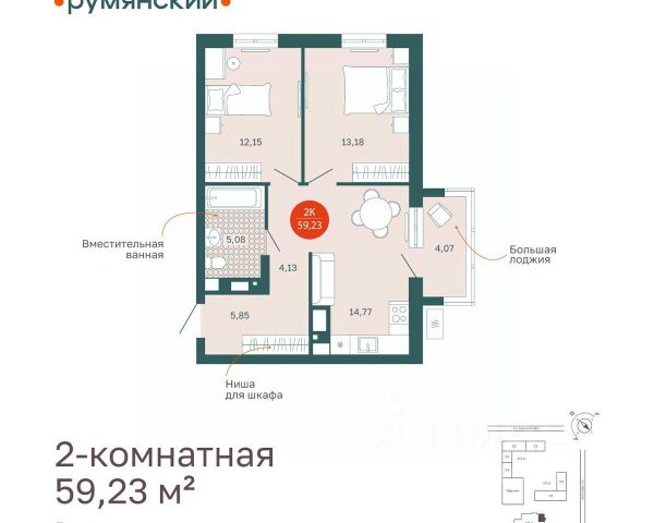 Продается 2комнатная квартира на 12 этаже от застройщика Страна Девелопмент. Площадь квартиры 27,69 кв. м.