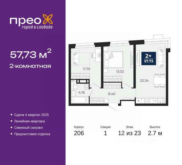 Продаётся квартира площадью 60.50 м2 в жилом комплексе "Айрис". Квартира находится на 2 этаже дома, который будет введен в эксплуатацию в 3 квартале 2027 года. Жилая площадь квартиры 16.50 м2, площадь просторной кухни — 16.70 м2. Среди особенностей планировки — изолированные комнаты с окнами на одну сторону, 1 совмещённый санузел. Жилой комплекс "Айрис" — это: фиджитал-квартал в Тюмени дома высотой от 7 до 25 этажей квартиры с системой "Умный дом" цифровые технологии как элемент благоустройства Срок сдачи — III кв. 2027 Окружение В нескольких минутах ходьбы от дома — парк "Комарово" с волейбольной площадкой, открытым кинотеатром, зонами для барбекю и катком. Неподалеку от Airis находится центр иппотерапии, где можно покататься на лошадях и взять уроки верховой езды. На территории Airis появится собственный парк с прогулочными аллеями. Инфраструктура В 5-10 минутах от квартала открыты 2 детских сада и гимназия. На шопинг можно отправиться в торговые комплексы "Колумб" и "Кристалл" — они находятся недалеко от дома. Благоустройство Уютный двор — приватное пространство для жителей. В беседках можно будет почитать книгу в тишине, а в тени деревьев устроиться на пикник. На крыше многоуровневого паркинга будет лаунж-зона с кинотеатром, баскетбольная площадка и воркаут-пространство, где можно позаниматься с виртуальным тренером — достаточно отсканировать код. Лобби Интерьеры лобби выполнены в пастельных тонах с элементами фиджитал-решений. Для отдыха и ожидания гостей создана лаунж-зона. Также есть гостевые санузлы. Колясочные Возвращайтесь налегке после прогулки с малышом — оставить коляску можно в специальном помещении на первом этаже. Кладовые Для сезонных и габаритных вещей предусмотрены отдельные кладовые на цокольном этаже. В каждом помещении уже проведено электричество и выполнена стяжка пола. Паркинг На территории — два многоуровневых наземных паркинга. Один из них примыкает к домам — из него можно напрямую пройти в парадные. Планировки Планировки квартала — от компактной студии до сити-хауса с собственным палисадником — соответствуют любым жизненным сценариям. Можно выбрать квартиры с террасами и готовыми дизайнерскими интерьерами. Купить квартиру в новостройке в округе Калининский в городе Тюмень.