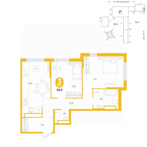 Квартира располагается в ГК "Чистые пруды" от "Паритет девелопмент". Это флагманский проект компании в Тюмени. Расположение вдали от шумных улиц и оживленного центра создает ощущение жизни на природе и окружает тишиной и спокойствием. Есть вся необходимая социальная и коммерческая инфраструктура: магазины и сфера услуг на первых этажах. Школы, сады, поликлиника, парки в шаговой доступности. Квартал строится в районе Новой Лесобазы. Рядом выезд на объездную, что существенно экономит время. Поездка до центра города на автомобиле занимает 15-20 минут. Жилой квартал "Чистые пруды" сформирован из домов переменной этажности и многоуровневых паркингов. Ввод 1 очереди строительства запланирован на II кв. 2028 года. Всё благоустройство квартала представлено двумя функциональными зонами: приватная внутри дворовая и общественная. Каждый закрытый двор имеет выход на единую променадную зону - бульвар. Концепция благоустройства основана на принципе модульности, что формирует основную идею приватности. Приватность проекта подчеркивает его особенный климат внутри. Модульное благоустройство позволит максимально эффективно использовать пространство двора и удовлетворить потребности различных категорий жителей. В квартирах базово выполнена улучшенная черновая отделка, которая включает в себя: выровненные стены, стяжка пола с шумоизоляцией, горизонтальная разводка отопления, установлены счетчики с телеметрией, окна с 5-камерным профилем и надежные входные двери. При желании можно добавить ремонт от застройщика и включить его в стоимость ипотеки, что позволит сэкономить на стройматериалах и переехать сразу после получения ключей. Характеристики квартиры: этаж - 3 количество комнат - 2 номер помещения - 17 площадь квартиры - 56,8 кв.м Гармоничные пропорции и большие окна наполняют пространство светом, создавая уютную атмосферу. Умное зонирование позволяет удобно организовать как рабочую, так и жилую зоны, что особенно важно для современных жителей. Санузел спроектирован с учетом всех потребностей: здесь есть ванна и место для стиральной машины. Каждый метр квартиры используется с максимальной эффективностью, что делает эту планировку отличным выбором для тех, кто ценит комфорт и удобство. Продам квартиру в новостройке в микрорайоне Казачьи Луга в городе Тюмень.