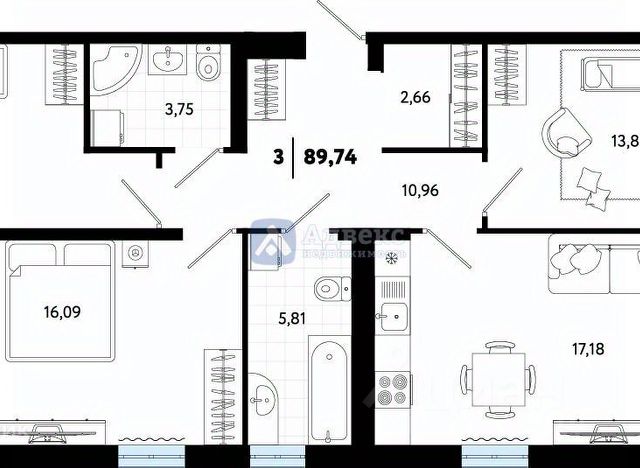• От 11,3 млн руб. за 89,7 м² м², средняя цена 11,3 млн руб.