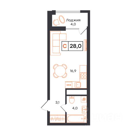 • От 4,5 млн ₽ за 27,6 м² м², средняя цена 4,9 млн ₽