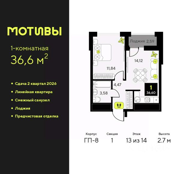 • 1-4 комнатные квартиры площадью от 27,6 м² до 37,4 м² м².