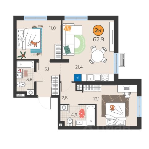 Квартира сдается в предчистовой отделке. Все грязные работы: разводка электричества и отопления; стяжка пола; стены "под маяк" - будут уже выполнены. Розетки, выключатели и радиаторы установлены. На входе — надежная стальная дверь. Вам останется только выбрать материалы и сделать ремонт по своему вкусу.