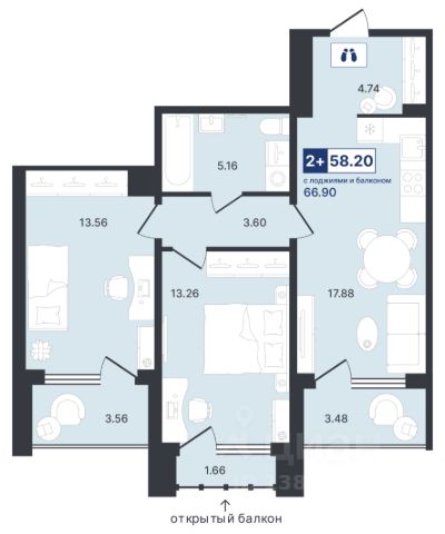 - лоджия и/или балкон (при наличии) согласно проектной документации.