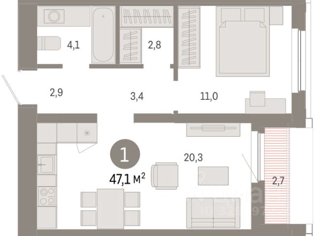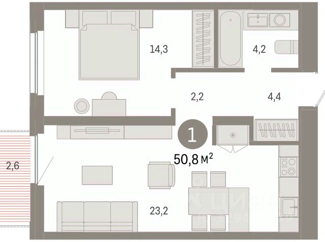 1-комн. квартира с предчистовой отделкой в ЖК "Зарека" на 2 этаже. Общая площадь: 43.8 кв.м., жилая: 9.7 кв.м., площадь просторной кухни-гостиной: 16.7 кв.м. Все окна выходят на одну сторону. В квартире один балкон, один совмещенный санузел. Наличие террасы в квартире дает возможность для обустройства дополнительной площади. Высота потолков 2.7 м. Дом монолитный, многоподъездный, переменной этажности, от 6 до 16 этажей. Квартира находится в 3-й секции высотой 9 этажей в корпусе 5-2. На этаже 11 квартир. В подъезде 1 пассажирский и 1 грузовой лифт. Окончание строительства - 4 квартал 2026 года. Оформление сделки по договору долевого участия. Квартира с кухней-гостиной и одной спальней в жилом районе "Зарека". Особенности планировки: свободная планировка, терраса. квартиры в нашей базе: ЗРК05.2-Ж3.2.1. Проект На планировочную структуру "Зареки" повлияла близость к автомобильному мосту Челюскинцев. Мы расположили жилые здания так, чтобы они постепенно удалялись от проезжей части. Приём напоминает лесенку: чем сильнее мост возвышается над участком застройки, тем дальше по отношению к нему стоят дома. Этот ступенчатый сдвиг позволил нам сформировать буфер между кварталами и оживлённой магистралью. Мы намерены высадить здесь высокие деревья и создать дополнительную защиту от дорожных шума и пыли. В границах нашего участка мы намерены разместить школу и два встроенных детских сада на 135 и 150 мест. Общественные пространства С севера на юг территорию будет пронизывать пешеходный бульвар. Мы мыслим это общественное пространство как главный центр притяжения. На нём будут сосредоточены основные детские игровые и спортивные зоны, места для встреч и спокойного отдыха. Он также сыграет роль мостика, ведущего к другим нашим проектам — "Европейскому кварталу" и "Дому у озера". Одна из базовых идей мастер-плана касается береговой линии. Сегодня озеленение этой территории носит стихииныи характер, а прямому доступу к Туре препятствует дамба. Мы хотим благоустроить пространства у воды и открыть их для людей. Архитекторы спроектировали систему многоярусных троп и спусков к реке, смотровые площадки и места для активного отдыха и пикников.