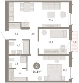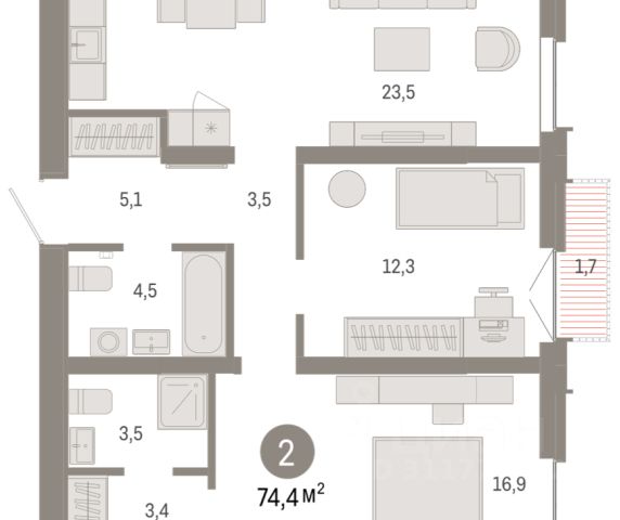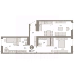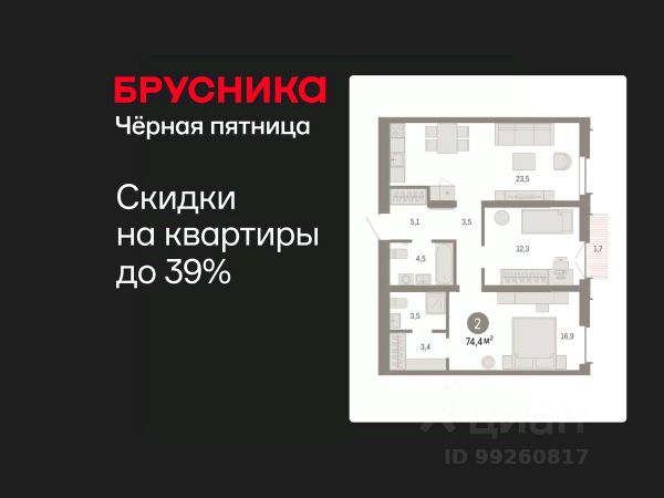Квартира в счёт первоначального взноса по программе обмена. По всем вопросам звоните в офис продаж, наши менеджеры вам все расскажут! 2-комн. квартира с предчистовой отделкой в ЖК "Республики 205" на 4 этаже. Общая площадь: 69.47 кв.м., жилая: 23.1 кв.м., площадь просторной кухни-гостиной: 20.5 кв.м. Комнаты изолированные, все окна выходят на одну сторону. В квартире две лоджии, два совмещенных санузла. Высота потолков 2.7 м. Купить квартиру можно с помощью программ покупки от застройщика Брусника: - ипотека по эксклюзивной ставке с помощью в получении положительного кредитного решения через сервис ипотечный брокер; - квартиры в рассрочку без процентов от застройщика Брусника; - обмен квартиры на новую. Получить одобрение ипотеки или рассрочку, а также осуществить обмен квартир можно онлайн. Дом монолитный, многоподъездный, переменной этажности, от 7 до 16 этажей. Квартира находится в 3-й секции высотой 16 этажей в корпусе 2. На этаже 7 квартир. В подъезде 2 грузовых лифта. Начало строительства - 1 квартал 2024 года. Окончание строительства - 1 квартал 2026 года. Оформление сделки по договору долевого участия. Район Проект расположен в границах улиц Пермякова, Энергетиков, Воровского и Республики. До центра города — 10 минут на машине. Рядом — автомобильная развязка на пересечении улиц Пермякова и Республики. В шаговой доступности есть школы, детские сады, поликлиники, крупный торговый центр, автовокзал и несколько скверов. Проект "Республики 205" — это проект комплексного развития территории, уникальный по своему наполнению. Переосмысляя бывшую территорию завода медицинского оборудования, мы создадим новое место силы — микрорайон, насыщенный деловой, развлекательной, рекреационной, игровой, образовательной и медицинской инфраструктурой. До каждого полезного сервиса здесь можно будет дойти за 15 минут. Локальными центрами "Республики 205" будут общественные пространства — скверы, парки, бульвары и площади. В границах нашего участка мы намерены разместить школу, рассчитанную на 1550 учеников, два детских сада на 300 мест и встроенный детский сад на 100 мест. В одном из цехов бывшего завода расположится креативный кластер "Кузница". Он станет площадкой для нескольких институций — галереи, лектория, книжного магазина-библиотеки, кинобара и точек креативного pop-up-ритейла. Пешеходные бульвары внутри района соединят между собой улицу ресторанов, детские и спортивные площадки, событийную площадь и летний кинотеатр. Идентификатор квартиры по базе застройщика: РСП-02-3-3. #zsm9M0