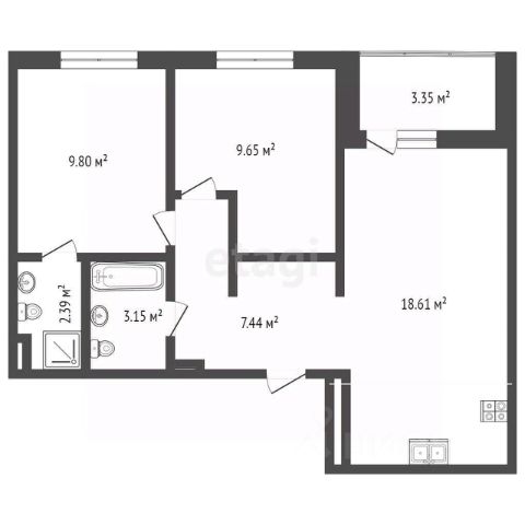 Совмещенный санузел 4,1м2