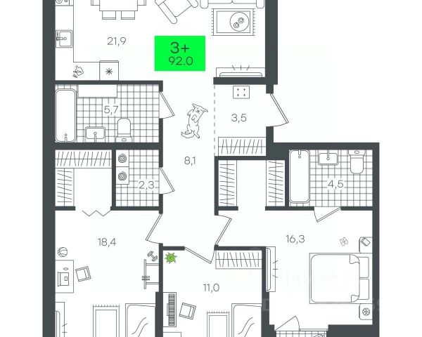 Продаётся 3-комнатная квартира в строящемся доме (1-Д5.1 (Малкова, 5)), срок сдачи: III-кв. 2026, общей площадью 95.17 кв.м., на 2 этаже. Компания 4D приступила к строительству нового жилого комплекса "Гранд квартал". Новый ЖК находится в зеленой зоне Калининского района, южнее микрорайона Тюменская слобода.