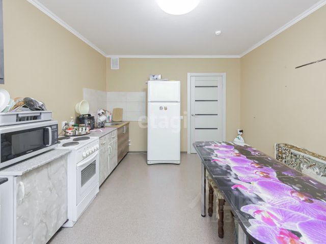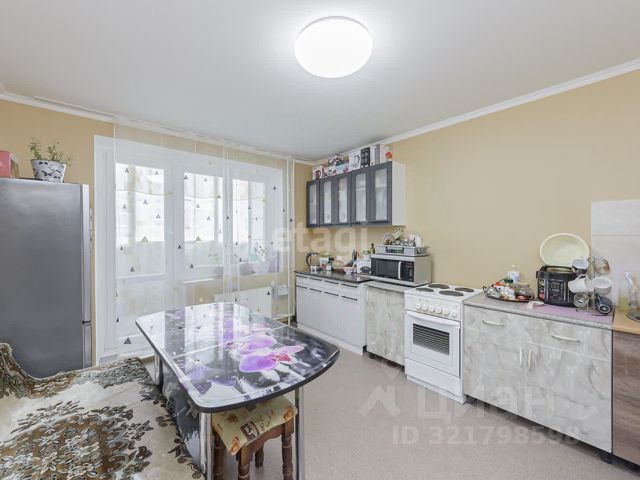 Мебель и техника остаются — кухня с каменной столешницей, духовой шкаф, варочная панель, вытяжка, спальные и рабочие зоны