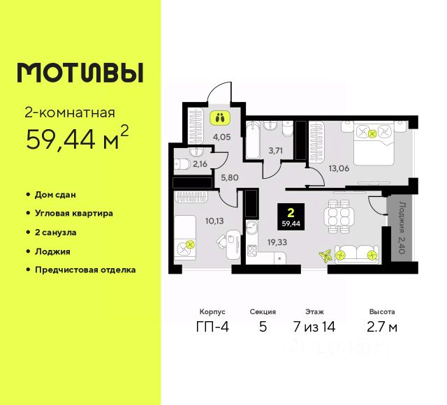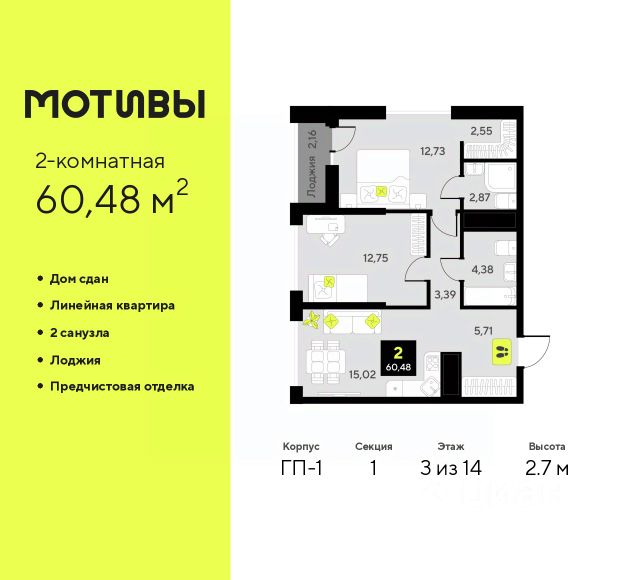 Просторная трехкомнатная квартира с предчистовой отделкой в ЖК "Мотивы" на 3 этаже. Общая площадь: 78.79 кв.м., жилая: 38.42 кв.м., площадь просторной кухни-столовой: 15.71 кв.м. Квартира - распашонка, без проходных комнат, окна выходят на paзные стороны дома. В квартире одна лоджия, один совмещенный и один раздельный санузел. Высота потолков 2.7 м. Квартира будет сдаваться с предчистовой отделкой White Box: выровнены и оштукатурены стены, проведено электричество и отопление, установлены радиаторы. Вы также можете приобрести квартиру с ремонтом от застройщика, представленным в трех цветовых решениях Scandi, Wood и Coffee и включающим ламинат, обои под покраску, двери, натяжной потолок и санузел с сантехникой. При желании вы можете заказать отделку под ключ, варианты возможных решений представлены в альбоме фотографий. Дом монолитный, многоподъездный, переменной этажности, от 5 до 14 этажей. Квартира находится во 2-й секции высотой 5 этажей в корпусе ГП-4. На этаже 5 квартир. В подъезде 1 грузовой лифт. В настоящее время строительство окончено, дом сдан в 4 квартале 2024 года. Оформление сделки по договору купли-продажи. Закрытая от автомобилей территория, безопасный двор и камеры видеонаблюдения - гаранты вашего спокойствия. Квартал будет располагать богатой инфраструктурой: на первых этажах разместятся магазины, пекарни, кофейни, пункты выдачи, аптеки, детские центры, цветочные салоны и многое другое, что сделает жизнь поистине комфортной. Рядом находится парк общей площадью почти 5000 м², в котором располагаются локации для игр и отдыха жителей, здесь можно совершить утреннюю пробежку или прогуляться после рабочего дня. В парке есть зона воркаута с тренажерами для взрослых, игровые комплексы с горками и канатный комплекс для детей разных возрастов, качели и лавочки для отдыха, площадки для командных видов спорта и для панна-футбола. В ЖК "Мотивы" всё продумано до мелочей: светлые холлы входных групп, оформленные в едином стиле, просторные колясочные, лапомойки для питомцев. На территории комплекса находятся 2 8-ми этажных паркинга и более 1000 м/м на открытой парковке. Жилой комплекс находится в одном из экологически благоприятных районов Тюмени, недалеко от Плехановского бора. При этом до центра города можно добраться за 15 минут, а до международного аэропорта Рощино за 13 минут. Окончание строительства: ГП 1, 2, 3, 4 сдача до конца 2024 года, ГП 6, 7, 8 сдача 2 квартал 2026 года. #ZWEoWg