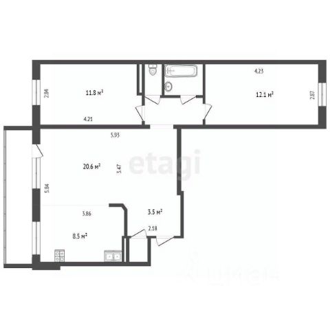 Серия 121 (панель), одна из лучших планировок — с большой застеклённой лоджией (8+ м²).