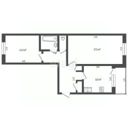 2-комн. квартира от застройщика с предчистовой отделкой в ЖК "Мотивы" на 5 этаже. Общая площадь: 62.6 кв.м. Высота потолков 2.7 м.