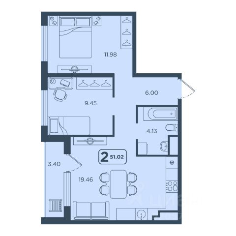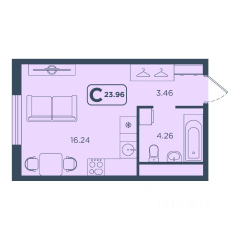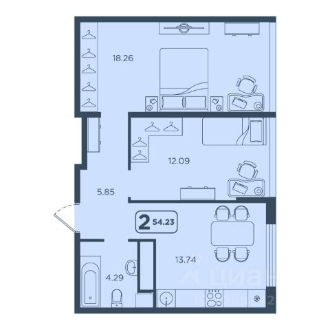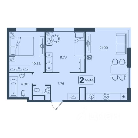 - Вторая спальня 25,1 м² — идеальный кабинет или детская с выходом на лоджию 9 м² для утреннего кофе на свежем воздухе.