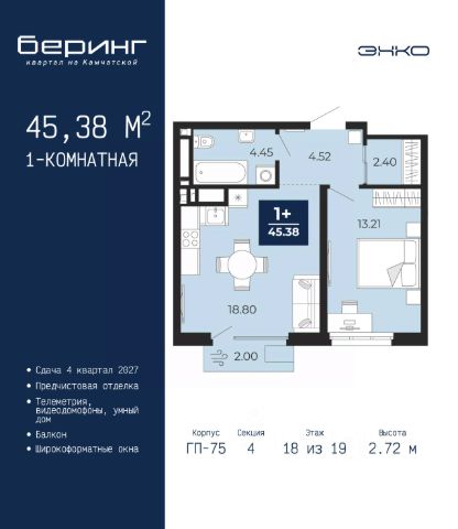 3-комн. квартира от застройщика с предчистовой отделкой в ЖК "Беринг" на 4 этаже. Общая площадь: 71.16 кв.м. Высота потолков 2.72 м. Дом монолитный, черырехподъездный, переменной этажности, от 19 до 24 этажей. Квартира находится в 1-й секции высотой 23 этажа в корпусе ГП-76. На этаже 7 квартир. В подъезде 2 пассажирских и 1 грузовой лифт. Окончание строительства - 4 квартал 2027 года. Оформление сделки по договору долевого участия. Подобно знаменитому исследователю, мы чувствуем себя первооткрывателями этой локации. Хотим показать новую суть места, сформировать для вас жизненный опыт, которого ещё не было. Беринг — район зелёного цвета. Беринг — район, который откроется вам с другой стороны. Впечатлит новым уровнем комфорта и качеством жизни. Беринг — открытие на карте города. Первый квартал расположен в районе Тура, в границах улиц: Камчатская Западносибирская Энтузиастов. Вокруг уже есть всё для того, чтобы ежедневная рутина была лишь частью жизни и не доставляла дискомфорта. Школы и детские сады, магазины и аптеки, поликлиника, места для семейного отдыха, пеших и велопрогулок, и даже рыбалки. Масштабное озеленение дворов — визитная карточка ЭНКО и ваш оазис спокойствия, чтобы отвлечься от повседневности. Раскидистые деревья, кустарники, травы и цветы — осталось остановиться, вдохнуть и расслабиться, глядя на эту природную красоту. Стилистика подъездов продолжает концепцию Беринга, вдохновлённого Камчаткой: сдержанный, но при этом впечатляющий дизайн соседствует с удобством и функциональностью. #2MEoad