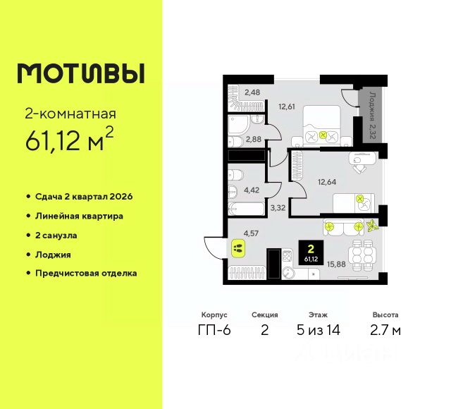 Просторная 1-комн. квартира с первичной отделкой в ЖК "Мотивы" на 8 этаже. Общая площадь: 37.45 кв.м., жилая: 12.01 кв.м., площадь просторной кухни-столовой: 15.83 кв.м. Все окна выходят на одну сторону. В квартире одна лоджия, один совмещенный санузел. Высота потолков 2.7 м. Квартира предоставляется в чистовой отделке: на полу ламинат, на стенах флизелиновые обои под покраску, санузел отделан плиткой, установлена вся сантехника, краны, смесители, душевые лейки и т.д., также в комплектацию входит кондиционер, видеодомофон, вызывная панель домофона уже установлена и подключена к работе. Выбирая место для жизни, вы хотите, чтобы оно было лучше и удобнее. Мы же хотим, чтобы каждый смог получить все, что пожелает при переезде в новый дом. Это наша цель, миссия и главный мотив. Пара шагов от дома и вы оказываетесь в парке, где можно совершить утреннюю пробежку или неспешно прогуляться после рабочего дня. Подъезды в домах сквозные, а входные группы расположены на уровне тротуара - в дом удобно заходить как с улицы, так и со двора. Домофон в тёплом тамбуре не позволит вам замёрзнуть, пока вы открываете двери. А хорошее настроение обеспечат светлые холлы, оформленные в едином стиле. Больше никакой грязи в квартире. Велосипеды и коляски можно оставить в колясочных, которые мы сделали по-настоящему просторными. А обладатели четверногих друзей смогут помыть их лапки после прогулки в специально оборудованных лапомойных комнатах. Квартира с видом на бескрайний природный простор или на урбанистический пейзаж? Легко! Мы создали безопасный двор, где можно без лишних тревог оставить детей играть во дворе. Закрытая от автомобилей территория и камеры видеонаблюдения - гарант вашего спокойствия. #24duTv