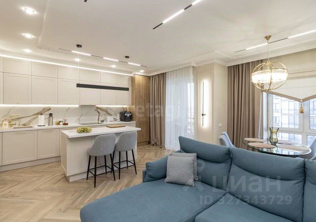 В домах микрорайона "Горизонт" представлены студии и квартиры с количеством комнат от одной до трех площадью от 23,90 кв. м до 81,37 кв. м с потолками высотой 270 см.