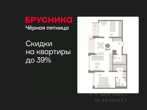 Квартира в счёт первоначального взноса по программе обмена. Информация по телефону, наши менеджеры вам все расскажут! 2-комн. квартира с предчистовой отделкой в ЖК "Дом у озера" на 3 этаже. Общая площадь: 78.37 кв.м., жилая: 26.5 кв.м., площадь просторной кухни-гостиной: 26.4 кв.м. Угловая квартира, окна oбecпeчивaют paвнoмepнoe ocвeщeниe в тeчeниe дня. В квартире одна лоджия, два совмещенных санузла. Высота потолков 2.7 м. Дом монолитный, многоподъездный, переменной этажности, от 2 до 8 этажей. Квартира находится в 4-й секции высотой 8 этажей в корпусе 3. На этаже 5 квартир. В подъезде 1 грузовой лифт. Окончание строительства - 2 квартал 2027 года. Оформление сделки по договору долевого участия. Квартира с кухней-гостиной и двумя спальнями в Доме у озера. Особенности планировки: гардеробная, вид во двор, лоджия, разнесённые спальни, предчистовая отделка, мастер-спальня. квартиры в нашей базе: ДМУ03-Ж4.3.5. "Дом у озера" является продолжением "Европейского квартала". Он расположен в центре заречного района города. В 2030 году здесь появится квартал, состоящий из урбан-вилл, таунхаусов, секционных домов и башни. Вокруг уже сформирована необходимая инфраструктура: детские сады, школы, спортивный комплекс, продуктовые магазины, аптеки, кофейни, рестораны и салоны красоты. Путь до центра города занимает 7 минут на машине. Озеро Тихое — ценный рекреационный ресурс. Брусника вернула ему прежнее значение и сделала новой точкой притяжения для жителей микрорайона. Ключевым элементом концепции благоустройства стала вода. В каждой части квартала архитекторы нашли для нее свою форму. Вдоль пешеходных улиц разместили искусственные ручьи, на центральной площади — фонтан и дождевые сады. Основная точка притяжения жителей — озеро и выходящий на его сторону променад. Здесь мы организуем смотровые площадки и расположим летние террасы кафе и ресторанов. Тесную связь застройки с ландшафтом обеспечивает многоуровневое озеленение. Буфер из деревьев и кустарников по периметру квартала превращается в естественный ветрозащитный экран. Такое решение позволяет создать на территории "Дома у озера" комфортный микроклимат. Подъезды "Дома у озера" с прозрачными входными группами и большими лифтами. Для мест общего пользования архитекторы разработали новую интерьерную коллекцию, вдохновленную эклектичными восточными мотивами. В отделке сочетаются коричневый, желтый и белый цвета, повторяющие колористические решения фасадов. Декоративные перегородки, установленные в лобби, напоминают машрабию — элемент арабской архитектуры в виде узорной решетки. За счет мягкой мебели, многоуровневого освещения теплых оттенков и предметов декора (например, зеркал и картин) холлы воспринимаются как продолжение квартиры. #Z6wBta