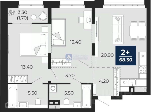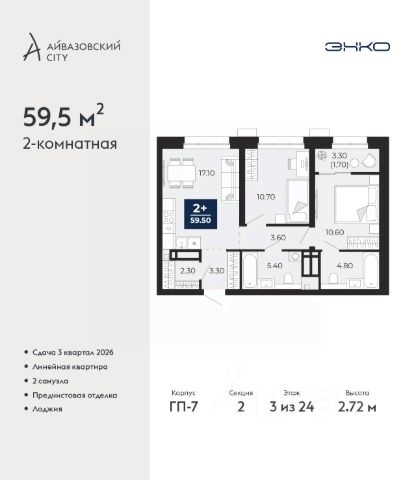 Двухкомнатная квартира с предчистовой отделкой в ЖК "Айвазовский City" на 7 этаже. Общая площадь: 74.2 кв.м., жилая: 28 кв.м., площадь просторной кухни-столовой: 20.1 кв.м. Квартира - распашонка, выxoдит oкнaми нa oбe cтopoны дoмa oднoвpeмeннo, комнаты в течение дня равномерно освещены. В квартире одна лоджия, два совмещенных санузла. Высота потолков 2.7 м. Дом монолитный, многоподъездный, переменной этажности, от 14 до 24 этажей. Квартира находится в 3-й секции высотой 24 этажа в корпусе ГП-8. На этаже 7 квартир. В подъезде 1 пассажирский и 1 грузовой лифт. Окончание строительства - 3 квартал 2026 года. Оформление сделки по договору долевого участия. Новый жилой район располагается в живописном месте на берегу Туры в центральной части города. Принципиально новое пространство для жизни в центре современного города для тех, чьи мечты сбываются, кто нацелен на постоянный рост, перемены к лучшему для себя и своих близких. Каждая деталь Айвазовский City вдохновляет и заряжает на новые свершения: авторская архитектура, сбалансированная продуманная инфраструктура, дизайнерские дворы со спортивными и детскими площадками, парковые зоны с фонтанами, водный канал, украшающий центральный прогулочный маршрут района и многое другое. В 2019 года проект стал лауреатом престижной премии Urban Awards 2019 в номинации "Лучший строящийся региональный жилой комплекс бизнес-класса". Главная особенность Айвазовский City - соседство разных архитектурных школ в рамках одного дома. Изысканная классика, выразительная эклектика и оригинальный модерн - жить в одном из таких домов настоящий повод для гордости. Айвазовский City это идеальное сочетание комфорта, технологий и развитой инфраструктуры. Вход в подъезд возможен с улицы и со двора. Отправляясь на работу или за покупками, жители могут выйти с внешней стороны дома, а для прогулки с ребенком со стороны двора. Экологически чистые материалы и энергосберегающие технологии, качественное освещение общественных зон, видеонаблюдение по всей территории жилого района (в том числе в подъездах, лифтах и в подземном паркинге), закрытые дворы с доступом только для жителей Айвазовский City. Часть домов в Айвазовский City будут оснащены подземным паркингом. Востребованный в нашем климатическом поясе формат хранения автомобилей защитит собственность владельца в любое время года. Аккредитация в банках: ПАО "Газпромбанк", ПАО Банк "ВТБ", "Сбербанк России", ОАО "Альфа-Банк", ПАО Банк "ФК Открытие" и других. #Z6SFge