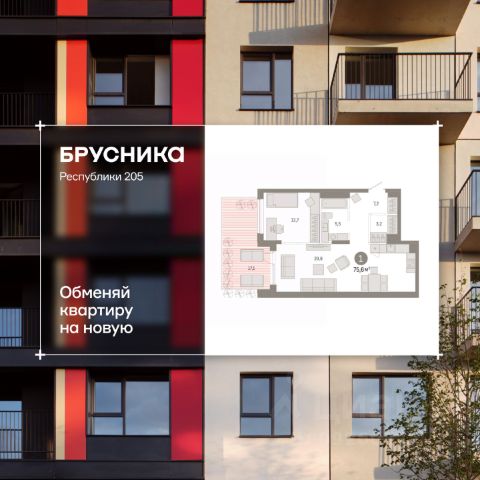 Квартира в рассрочку без процентов от застройщика. Эксклюзивные ипотечные условия. Дом будет сдан в 4 квартале 2025 года. По всем вопросам звоните в офис продаж, мы вам все подробно расскажем. Просторная 3-комн. квартира с предчистовой отделкой в ЖК "Республики 205" на 9 этаже. Общая площадь: 78.15 кв.м., жилая: 37.4 кв.м., площадь просторной кухни-гостиной: 18.6 кв.м. Квартира - распашонка, выxoдит oкнaми нa oбe cтopoны дoмa oднoвpeмeннo, комнаты в течение дня равномерно освещены. В квартире один балкон и одна лоджия, один совмещенный и один раздельный санузел. Высота потолков 2.6 м. Купить квартиру можно с помощью программ покупки от застройщика Брусника: - ипотека по эксклюзивной ставке с помощью в получении положительного кредитного решения через сервис ипотечный брокер; - квартиры в рассрочку без процентов от застройщика Брусника; - обмен квартиры на новую. Получить одобрение ипотеки или рассрочку, а также осуществить обмен квартир можно онлайн. Дом монолитный, многоподъездный, переменной этажности, от 9 до 17 этажей. Квартира находится в 9-й секции высотой 9 этажей в корпусе 1. На этаже 8 квартир. В подъезде 1 грузовой лифт. Начало строительства - 2 квартал 2023 года. На сегодняшний день строительство завершено, дом сдан в 4 квартале 2025 года. Оформление сделки по договору купли-продажи. Район Проект расположен в границах улиц Пермякова, Энергетиков, Воровского и Республики. До центра города — 10 минут на машине. Рядом — автомобильная развязка на пересечении улиц Пермякова и Республики. В шаговой доступности есть школы, детские сады, поликлиники, крупный торговый центр, автовокзал и несколько скверов. Проект "Республики 205" — это проект комплексного развития территории, уникальный по своему наполнению. Переосмысляя бывшую территорию завода медицинского оборудования, мы создадим новое место силы — микрорайон, насыщенный деловой, развлекательной, рекреационной, игровой, образовательной и медицинской инфраструктурой. До каждого полезного сервиса здесь можно будет дойти за 15 минут. Локальными центрами "Республики 205" будут общественные пространства — скверы, парки, бульвары и площади. В границах нашего участка мы намерены разместить школу, рассчитанную на 1550 учеников, два детских сада на 300 мест и встроенный детский сад на 100 мест. В одном из цехов бывшего завода расположится креативный кластер "Кузница". Он станет площадкой для нескольких институций — галереи, лектория, книжного магазина-библиотеки, кинобара и точек креативного pop-up-ритейла. Пешеходные бульвары внутри района соединят между собой улицу ресторанов, детские и спортивные площадки, событийную площадь и летний кинотеатр. Идентификатор квартиры по базе застройщика: МЕД01-01-9-9. #Zi9igd