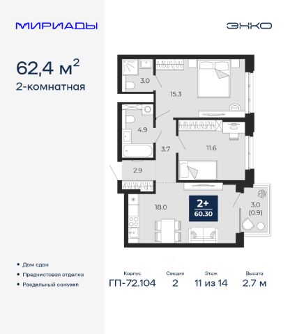 2-комн. квартира с европланировкой и предчистовой отделкой в ЖК "Мириады" на 1 этаже. Общая площадь: 40.7 кв.м., жилая: 20.7 кв.м., суммарная площадь гостиной-столовой с кухонной зоной: 15.4 кв.м. Европланировка, за счет большой площади кухни-гостиной квартира выглядит просторной и очень удобна для жизни. Комнаты изолированные, все окна выходят на одну сторону. В квартире одна лоджия, один совмещенный санузел. Высота потолков 2.7 м. Дом монолитный, двухподъездный, переменной этажности, от 14 до 18 этажей. Квартира находится во 2-й секции высотой 14 этажей в корпусе ГП-72.104. На этаже 8 квартир. В подъезде 1 пассажирский и 1 грузовой лифт. На сегодняшний день строительство окончено, дом сдан в 4 квартале 2025 года. Оформление сделки по договору купли-продажи. Вселенная бесконечных историй. Ранее невиданный Тюмени масштаб: территория 240 гектаров и 1 650 000 м² застройки. Мириады это город масштабных перемен и больших возможностей. Город зеленых рощ и зеркальных озер. Город для работы, учебы и развлечений. Город для детей и их родителей. Город для всех и каждого. Проект расположен в районе Мыс рядом с ТРЦ "Тюмень Сити Молл" в границах улицы Тимофея Чаркова, Тобольского тракта и объездной дороги. Срок полного освоения территории - до 2034 года. #Z6TdCv