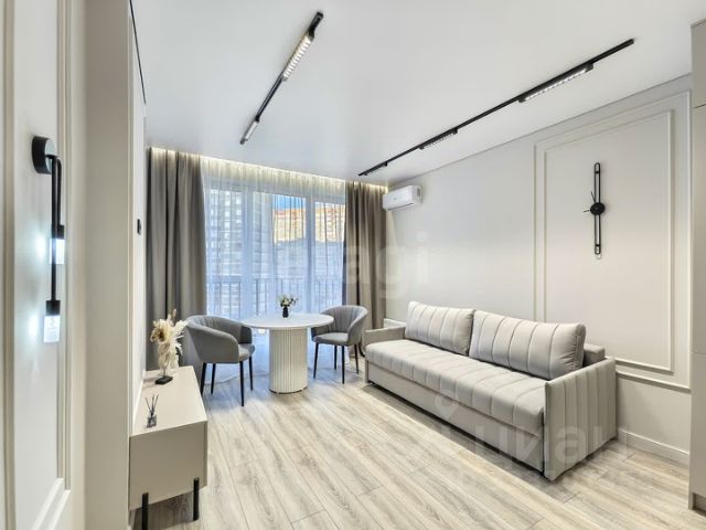 Современная уютная квартира в новом доме, который только что сдался! 1 комната площадью 36,5 кв.м, расположенная на 18 этаже 24-этажного дома с отличным панорамным видом на город. Всё новое — современный ремонт, сантехника, электрика, двери, окна. Продуманная планировка: просторная комната, кухня, санузел в кафеле. — Новый современный ЖК с благоустроенной территорией — Просторная парковка, видеонаблюдение, современные лифты — Рядом магазины, школы, детские сады, кафе — Удобная транспортная развязка, до центра 1015 минут