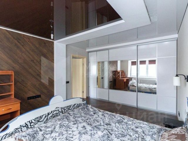 В квартире в зоне спальни сделана гардеробная, оборудованная встроенной мебелью,.
