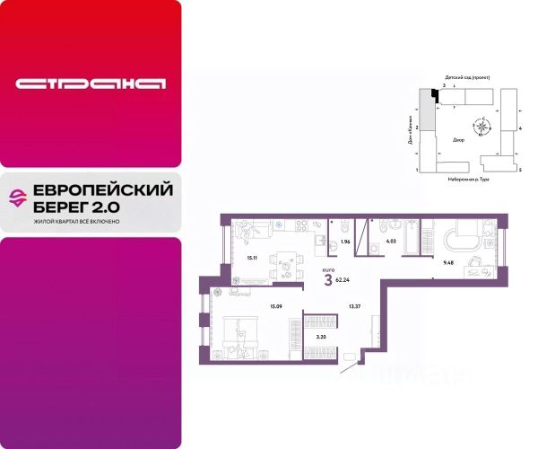 2-комн. квартира с предчистовой отделкой в ЖК "Зарека" на 1 этаже. Общая площадь: 115.26 кв.м. Высота потолков 2.7 м. Дом монолитный, многоподъездный, переменной этажности, от 5 до 9 этажей. Квартира находится в 5-й секции высотой 8 этажей в корпусе 1. На этаже 7 квартир. В подъезде 1 грузовой лифт. Начало строительства - 3 квартал 2023 года. Окончание строительства - 3 квартал 2026 года. Оформление сделки по договору долевого участия. Двухуровневая квартира с кухней-гостиной и двумя спальнями в жилом районе "Зарека". Особенности планировки: вид во двор, двухуровневая, мастер-спальня, отдельный вход, панорамное остекление, предчистовая отделка, разнесённые спальни, терраса, терраса на крыше. квартиры в нашей базе: Панама01-01-5-5.1.1. Проект На планировочную структуру "Зареки" повлияла близость к автомобильному мосту Челюскинцев. Мы расположили жилые здания так, чтобы они постепенно удалялись от проезжей части. Приём напоминает лесенку: чем сильнее мост возвышается над участком застройки, тем дальше по отношению к нему стоят дома. Этот ступенчатый сдвиг позволил нам сформировать буфер между кварталами и оживлённой магистралью. Мы намерены высадить здесь высокие деревья и создать дополнительную защиту от дорожных шума и пыли. В границах нашего участка мы намерены разместить школу и два встроенных детских сада на 135 и 150 мест. Общественные пространства С севера на юг территорию будет пронизывать пешеходный бульвар. Мы мыслим это общественное пространство как главный центр притяжения. На нём будут сосредоточены основные детские игровые и спортивные зоны, места для встреч и спокойного отдыха. Он также сыграет роль мостика, ведущего к другим нашим проектам — "Европейскому кварталу" и "Дому у озера". Одна из базовых идей мастер-плана касается береговой линии. Сегодня озеленение этой территории носит стихииныи характер, а прямому доступу к Туре препятствует дамба. Мы хотим благоустроить пространства у воды и открыть их для людей. Архитекторы спроектировали систему многоярусных троп и спусков к реке, смотровые площадки и места для активного отдыха и пикников. #2toeZ9