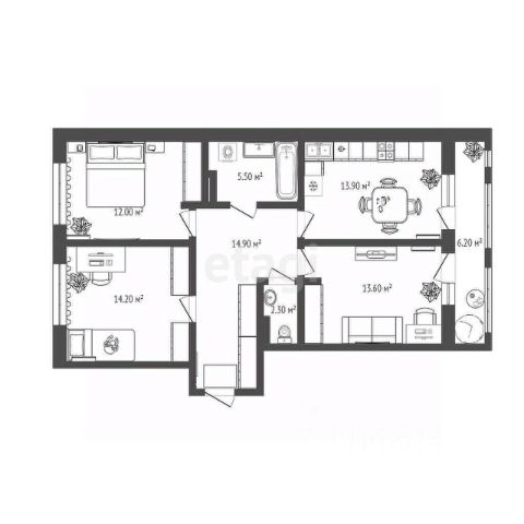 • ✅ Минимальная площадь: 57,6 м²