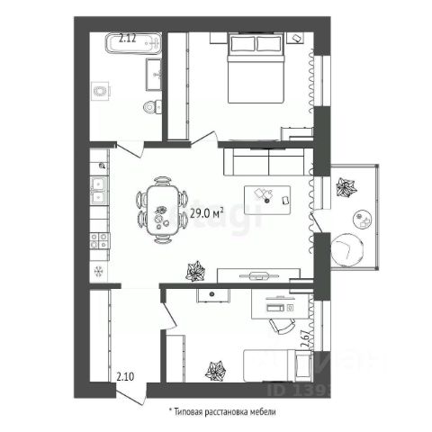 2. Формат два плюс - одно из самых востребованных решений: просторная кухня-гостиная 19 кв.м, где комфортно разместились зоны приготовления, столовая зона и зона отдыха, две изолированные комнаты правильной формы, в нашем случае это спальня со своей большой гардеробной и кабинет (он может стать для вас детской, гостевой комнатой, творческой мастерской), совмещенный санузел, функциональный коридор с местом под систему хранения. Все логично, удобно и комфортно.