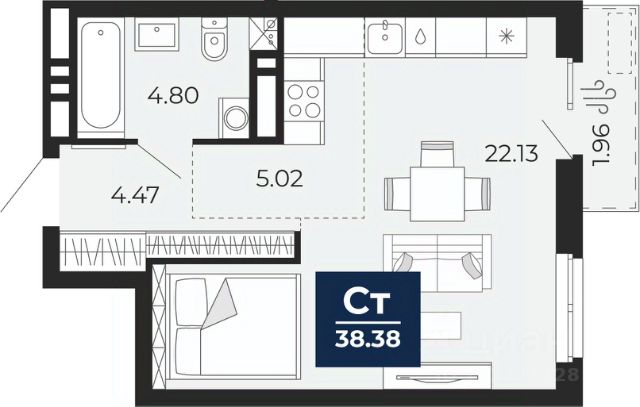 Торопитесь оформить бронирование по акционной цене, предложение ограничено! Стоимость квартиры указана со скидкой, ваша экономия составит 849,400 руб. Информация по телефону, мы вам все подробно расскажем. 1-комн. квартира-студия с предчистовой отделкой в ЖК "Айвазовский" на 4 этаже. Общая площадь: 40.34 кв.м., площадь гостиной 31.05 кв.м., из которых 10 кв.м. выделено под кухонную зону. Угловая квартира, окна oбecпeчивaют paвнoмepнoe ocвeщeниe в тeчeниe дня. В квартире один совмещенный санузел. Высота потолков 2.7 м. Дом монолитный, многоподъездный, высотой 24 этажа. Квартира находится во 2-й секции в корпусе ГП-13. На этаже 6 квартир. В подъезде 1 пассажирский и 1 грузовой лифт. Окончание строительства - 4 квартал 2027 года. Оформление сделки по договору долевого участия. Новый жилой район располагается в живописном месте на берегу Туры в центральной части города. Принципиально новое пространство для жизни в центре современного города для тех, чьи мечты сбываются, кто нацелен на постоянный рост, перемены к лучшему для себя и своих близких. Каждая деталь ЖК "Айвазовский" вдохновляет и заряжает на новые свершения: авторская архитектура, сбалансированная продуманная инфраструктура, дизайнерские дворы со спортивными и детскими площадками, парковые зоны с фонтанами, водный канал, украшающий центральный прогулочный маршрут района и многое другое. В 2019 года проект стал лауреатом престижной премии Urban Awards 2019 в номинации "Лучший строящийся региональный жилой комплекс бизнес-класса". Главная особенность Айвазовский - соседство разных архитектурных школ в рамках одного дома. Изысканная классика, выразительная эклектика и оригинальный модерн - жить в одном из таких домов настоящий повод для гордости. Айвазовский это идеальное сочетание комфорта, технологий и развитой инфраструктуры. Вход в подъезд возможен с улицы и со двора. Отправляясь на работу или за покупками, жители могут выйти с внешней стороны дома, а для прогулки с ребенком со стороны двора. Экологически чистые материалы и энергосберегающие технологии, качественное освещение общественных зон, видеонаблюдение по всей территории жилого района (в том числе в подъездах, лифтах и в подземном паркинге), закрытые дворы с доступом только для жителей Айвазовский. Часть домов в Айвазовский будут оснащены подземным паркингом. Востребованный в нашем климатическом поясе формат хранения автомобилей защитит собственность владельца в любое время года. Аккредитация в банках: "Сбербанк России", ПАО Банк "ВТБ", ОАО "Альфа-Банк", ПАО "Газпромбанк", ПАО Банк "ФК Открытие" и других. #zmTec9 Продам квартиру-студию 40 м2 (квадратных метров) в Тюменской области.