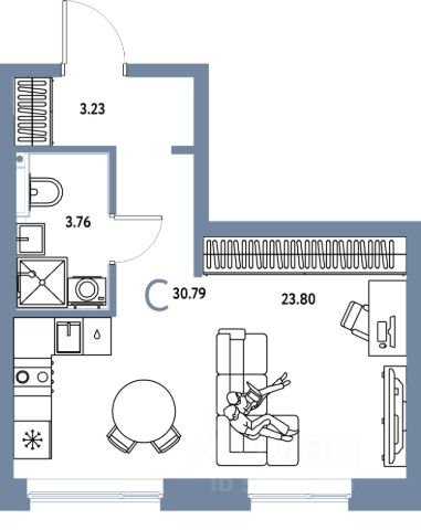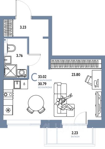 5,33 кв.м. (не входит в стоимость квартиры).