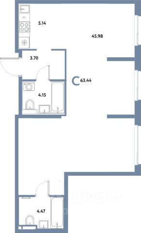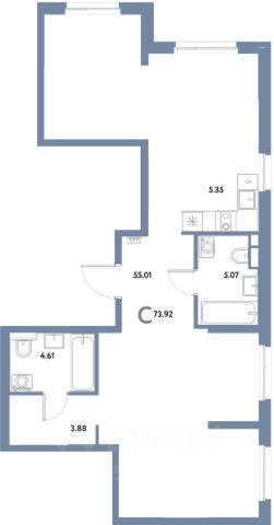 Квартира с белой, предчистовой отделкой.