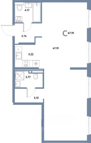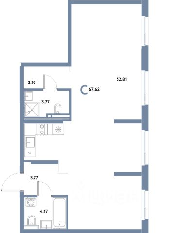 просторная кухня-гостиная 16,9 кв.м., гардеробная-постирочная, лоджия 3.9 кв.м.