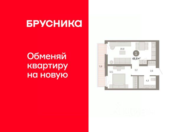 Продается однокомнатная квартира с предчистовой отделкой в ЖК "Республики 205" на 6 этаже. Общая площадь: 48.79 кв.м. Высота потолков 2.7 м. Купить квартиру можно с помощью программ покупки от застройщика Брусника: - ипотека по эксклюзивной ставке с помощью в получении положительного кредитного решения через сервис ипотечный брокер; - квартиры в рассрочку без процентов от застройщика Брусника; - обмен квартиры на новую. Получить одобрение ипотеки или рассрочку, а также осуществить обмен квартир можно онлайн. Дом монолитный, многоподъездный, переменной этажности, от 7 до 25 этажей. Квартира находится в 7-й секции высотой 9 этажей в корпусе 3-1. На этаже 7 квартир. В подъезде 1 пассажирский и 1 грузовой лифт. Окончание строительства - 1 квартал 2027 года. Оформление сделки по договору долевого участия. Район Проект расположен в границах улиц Пермякова, Энергетиков, Воровского и Республики. До центра города — 10 минут на машине. Рядом — автомобильная развязка на пересечении улиц Пермякова и Республики. В шаговой доступности есть школы, детские сады, поликлиники, крупный торговый центр, автовокзал и несколько скверов. Проект "Республики 205" — это проект комплексного развития территории, уникальный по своему наполнению. Переосмысляя бывшую территорию завода медицинского оборудования, мы создадим новое место силы — микрорайон, насыщенный деловой, развлекательной, рекреационной, игровой, образовательной и медицинской инфраструктурой. До каждого полезного сервиса здесь можно будет дойти за 15 минут. Локальными центрами "Республики 205" будут общественные пространства — скверы, парки, бульвары и площади. В границах нашего участка мы намерены разместить школу, рассчитанную на 1550 учеников, два детских сада на 300 мест и встроенный детский сад на 100 мест. В одном из цехов бывшего завода расположится креативный кластер "Кузница". Он станет площадкой для нескольких институций — галереи, лектория, книжного магазина-библиотеки, кинобара и точек креативного pop-up-ритейла. Пешеходные бульвары внутри района соединят между собой улицу ресторанов, детские и спортивные площадки, событийную площадь и летний кинотеатр. Идентификатор квартиры по базе застройщика: РСП03. #26d8T0