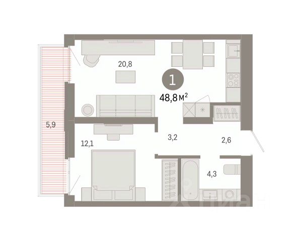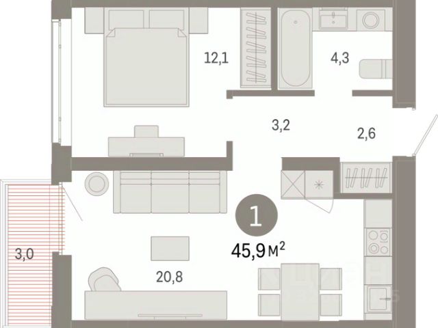 1-комн. квартира с предчистовой отделкой в ЖК "Республики 205" на 5 этаже. Общая площадь: 45.87 кв.м., жилая: 12.1 кв.м., площадь просторной кухни-гостиной: 20.8 кв.м. Все окна выходят на одну сторону. В квартире один балкон, один совмещенный санузел. Высота потолков 2.7 м. Купить квартиру можно с помощью программ покупки от застройщика Брусника: - ипотека по эксклюзивной ставке с помощью в получении положительного кредитного решения через сервис ипотечный брокер; - квартиры в рассрочку без процентов от застройщика Брусника; - обмен квартиры на новую. Получить одобрение ипотеки или рассрочку, а также осуществить обмен квартир можно онлайн. Дом монолитный, многоподъездный, переменной этажности, от 7 до 25 этажей. Квартира находится в 8-й секции высотой 7 этажей в корпусе 3-1. На этаже 4 квартиры. В подъезде 1 пассажирский и 1 грузовой лифт. Окончание строительства - 1 квартал 2027 года. Оформление сделки по договору долевого участия. Район Проект расположен в границах улиц Пермякова, Энергетиков, Воровского и Республики. До центра города — 10 минут на машине. Рядом — автомобильная развязка на пересечении улиц Пермякова и Республики. В шаговой доступности есть школы, детские сады, поликлиники, крупный торговый центр, автовокзал и несколько скверов. Проект "Республики 205" — это проект комплексного развития территории, уникальный по своему наполнению. Переосмысляя бывшую территорию завода медицинского оборудования, мы создадим новое место силы — микрорайон, насыщенный деловой, развлекательной, рекреационной, игровой, образовательной и медицинской инфраструктурой. До каждого полезного сервиса здесь можно будет дойти за 15 минут. Локальными центрами "Республики 205" будут общественные пространства — скверы, парки, бульвары и площади. В границах нашего участка мы намерены разместить школу, рассчитанную на 1550 учеников, два детских сада на 300 мест и встроенный детский сад на 100 мест. В одном из цехов бывшего завода расположится креативный кластер "Кузница". Он станет площадкой для нескольких институций — галереи, лектория, книжного магазина-библиотеки, кинобара и точек креативного pop-up-ритейла. Пешеходные бульвары внутри района соединят между собой улицу ресторанов, детские и спортивные площадки, событийную площадь и летний кинотеатр. Идентификатор квартиры по базе застройщика: РСП03. #2Md8TE