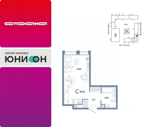 Объявление от застройщика Страна Девелопмент. Покупка квартиры защищена банком. Продается студия на 4 этаже от застройщика Страна Девелопмент. Площадь квартиры 25,53 кв. м. Юнион - проект двух застройщиков всероссийского масштаба: Страны Девелопмент и Группы Эталон. Мы объединили опыт и компетенции в девелопменте, создании экологичной среды, разработке ландшафтного дизайна, коммерческой инфраструктуры и продуманных планировок. Результатом синергии станет комфортное пространство для жизни, отдыха и восстановления. Рядом два парка с хвойными и смешанными лесами — "Затюменский" и "Плехановский бор". Летом можно устраивать пикники, а зимой кататься по лыжным трассам. ОТДЕЛКА Квартиры сдаются с предчистовой отделкой. Все грязные работы выполнены: произведена разводка электричества и отопления; выполнена стяжка пола; стены выровнены "под маяк". В квартире установлены розетки, выключатели и радиаторы. На входе — надежная стальная дверь. Вам остается только выбрать материалы и начать ремонт Доступна опция "Ремонт от застройщика". Стоимость можно включить в ипотеку. Вы можете заказать один из трех цветовых вариантов: светлый, натуральный или тёмный. КУХНЯ С ТЕХНИКОЙ Теперь дополнительно к ремонту можно заказать кухню со встроенной техникой. Эргономику и функциональное наполнение разработали под каждую планировку. ПОЛНАЯ МЕБЛИРОВКА Больше не нужно тратить время даже на подбор, доставку и сборку мебели.Вы можете включить в стоимость квартиры с ремонтом полную меблировку. Что входит в меблировку? - Кухня с техникой и сантехникой - Диван - Кровать - Шкаф в спальне - Шкаф в прихожей На консультации менеджер подскажет, какие акции действуют, и как получить одобрение по ипотеке с низкой ставкой. Более подробная информация по телефону. Застройщик ООО СЗ "Страна-Эталон". Проектные декларации на сайте наш.дом.рф.