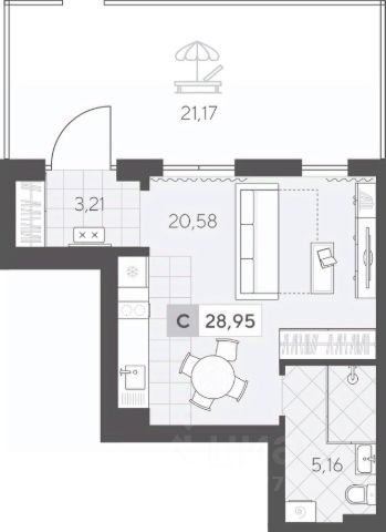 Квартал у Озера — это малоэтажные дома в скандинавском стиле, расположенные в живописном районе между озёрами Песьяное и Чистый пруд. Низкая плотность застройки, близость природы и разнообразие прогулочных маршрутов позволят насладиться покоем и отдохнуть от городской суеты. Студия площадью 28.95 кв.м на 1 этаже — хороший вариант для первой квартиры. Функциональная планировка позволит легко зонировать пространство и отделить зону готовки, гостиную и спальню.