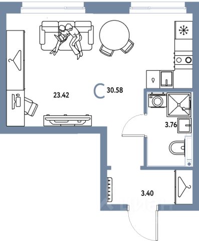• ✓ В базе Циан 2 квартир-студий без ремонта в микрорайоне Тарманы в городе Тюмень