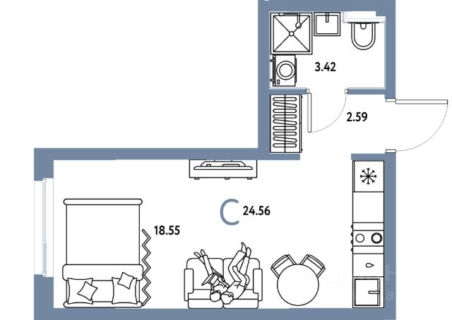 1-комн. квартира с предчистовой отделкой в ЖК "Республики 205" на 7 этаже. Общая площадь: 44.87 кв.м., жилая: 9.9 кв.м., площадь просторной кухни-гостиной: 20.9 кв.м. Все окна выходят на одну сторону. В квартире один балкон, один совмещенный санузел. Высота потолков 2.7 м.