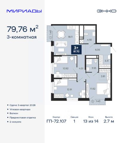 Продаётся студия в строящемся доме (Алматинская, дом 10), срок сдачи: IV-кв. 2026, общей площадью 26.55 кв.м., на 13 этаже. Новый жилой комплекс "ДомОтель" от Специализированного застройщика "ДОМОТЕЛЬ ПЕРВЫЙ" расположен по адресу: г. Тюмень, по ул. Алматинская.