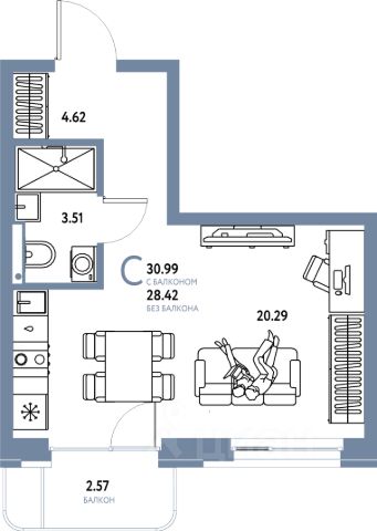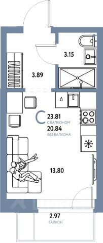 • ✅ Минимальная площадь: 20,8 м²